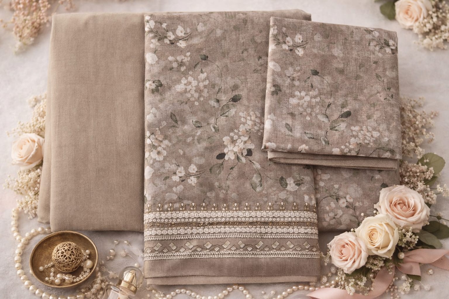 * Elegant mocha shade with soft floral motifs